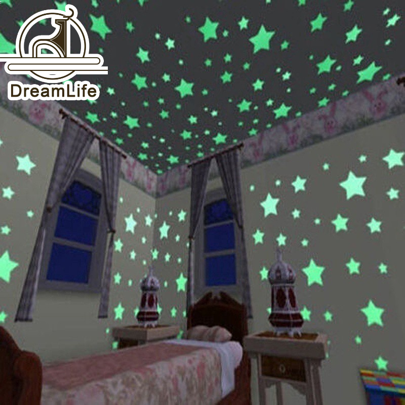 100 pcs Adesivos De Parede De Pentagrama Que Brilham No Escuro Decoração De Teto Fluorescente Para Quarto De Crianças