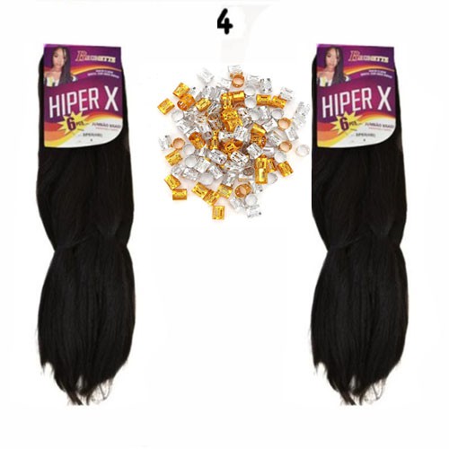 2 Pacotes Cabelo Jumbão Tranças Box Braid HIPERX = 800g + 10 ANÉIS