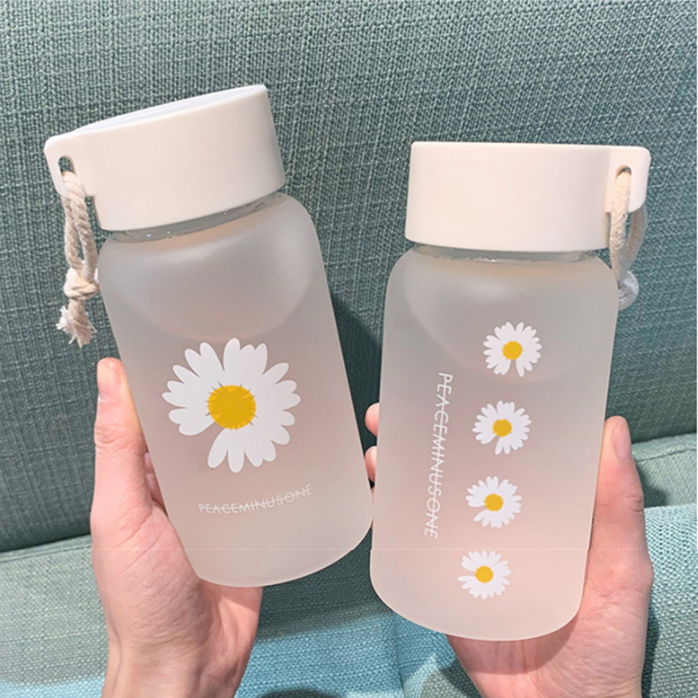 500ml Pequena Margarida Garrafas De Água De Plástico Transparente BPA Livre Criativo Fosco Garrafa Com Portab le Corda V