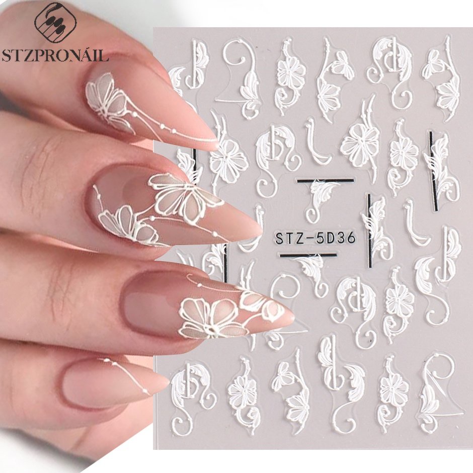 5D Acrílico Gravado Nail Art Adesivos Em Relevo Elegante Projeto Do Laço Casamento Nupcial Decalques Florais Encantos Sliders Manicure Decoração