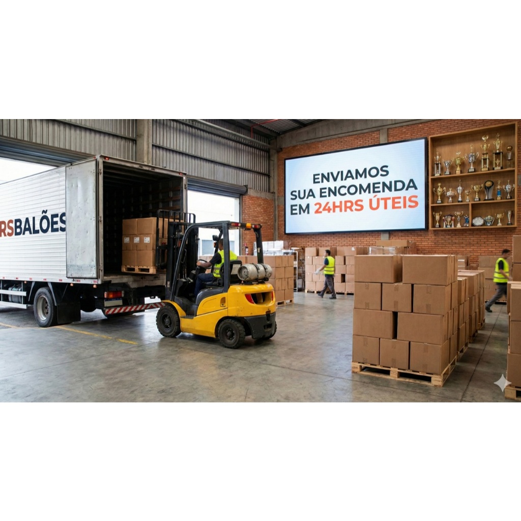 Cada balão possui o tamanho descrito em polegadas ou centímetros