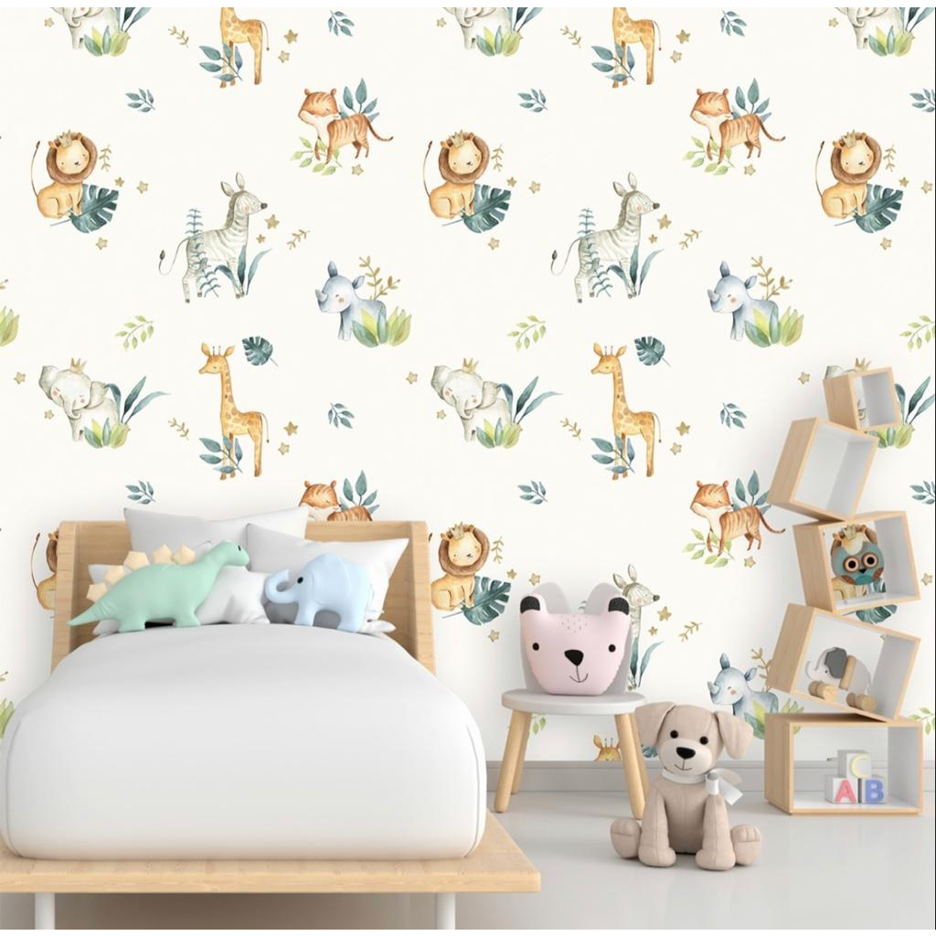 Adesivo Papel De Parede Safari Para Quarto Infantil Lavável Anti-bactericida 3mx50cm