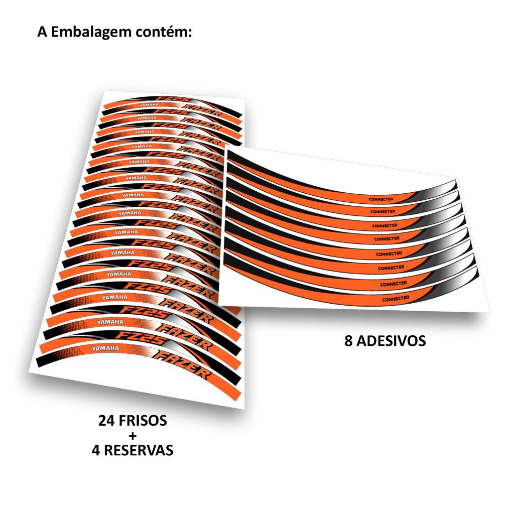 KIT ADESIVO DE RODA INTERNOS + FRISOS EXTERNOS YAMAHA FZ25 FAZER 250 (NÃO REFLETIVO)