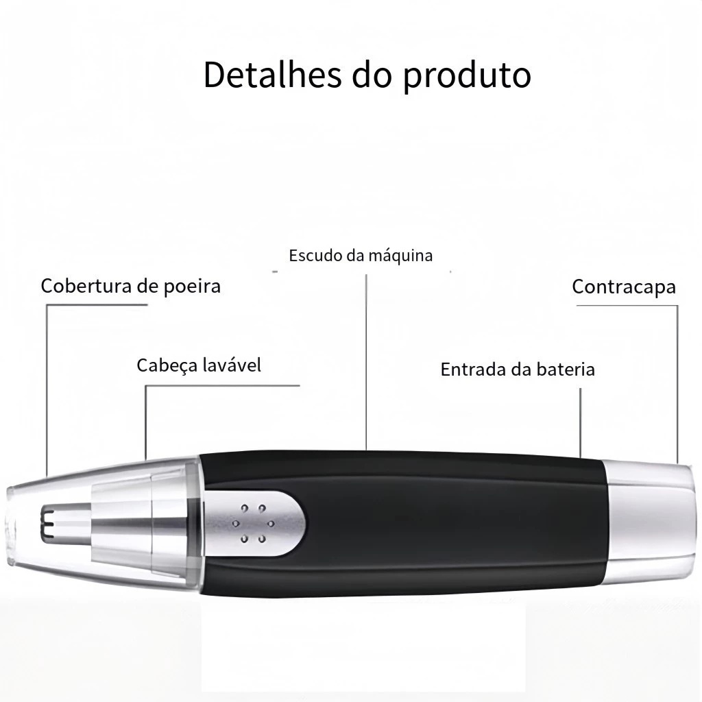 Podendo ser usado para aparar pelos no nariz, orelhas, sobrancelha etc.