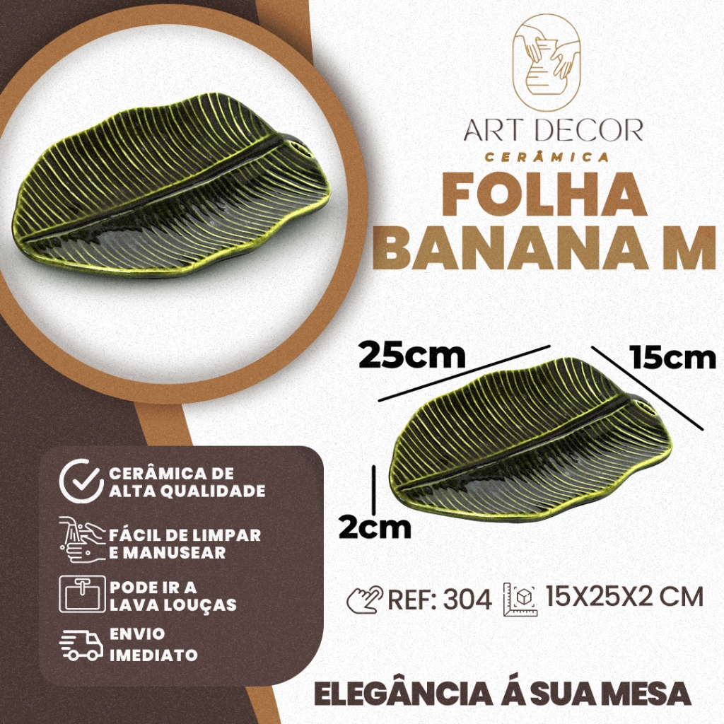 Bandeja Folha Banana Média Cerâmica Louça Cozinha Decoração