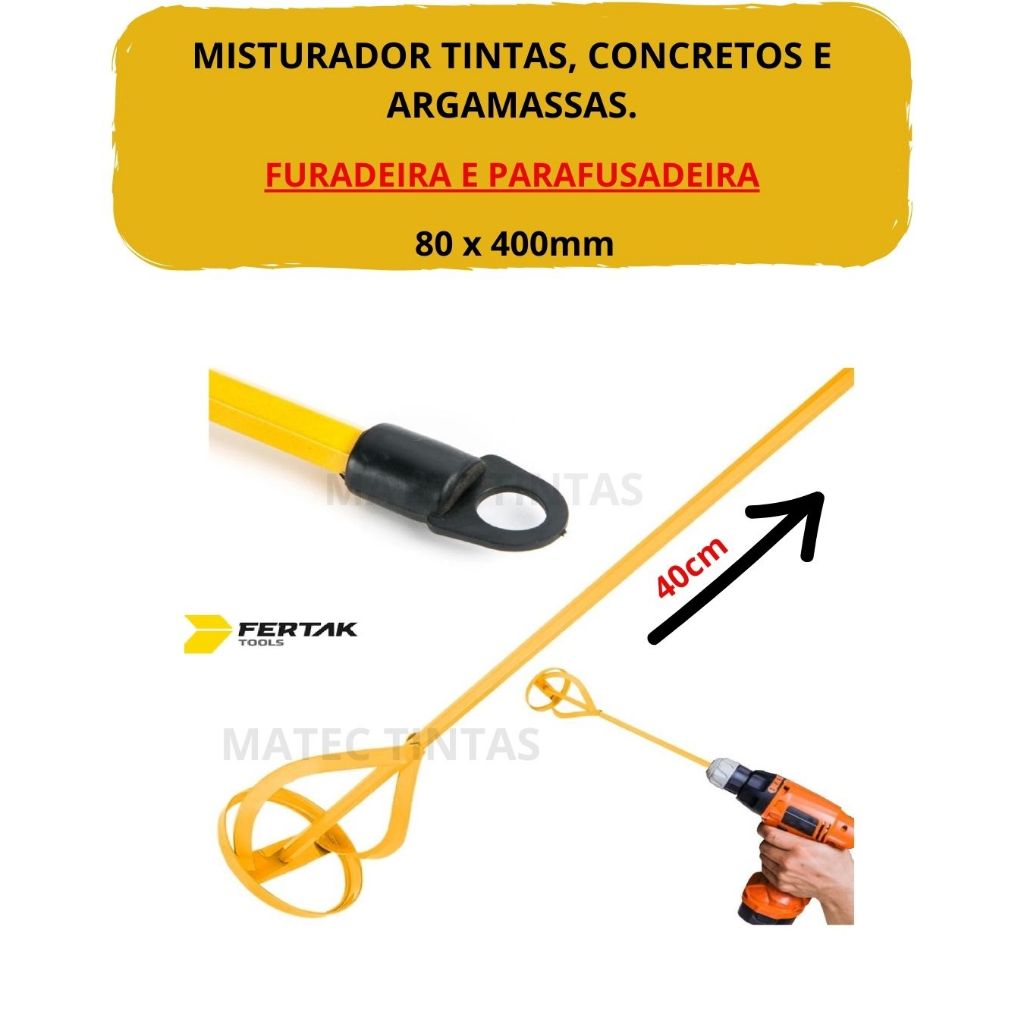 Batedor Misturador de Tinta Argamassa Gesso 80x400mm ou 100×600 mm Para Furadeira Fertak