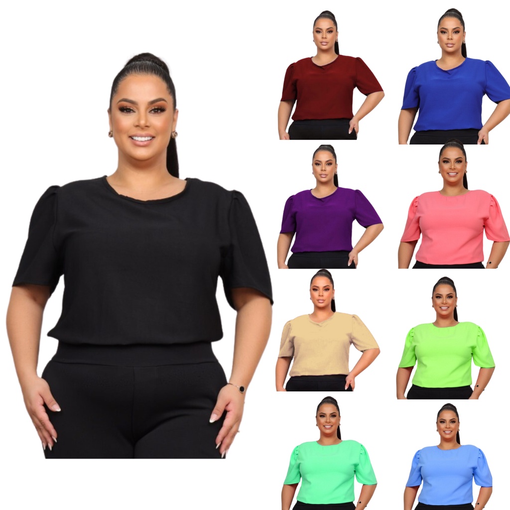 Blusa Feminina Plus Size Manga Curta Bufante Princesa