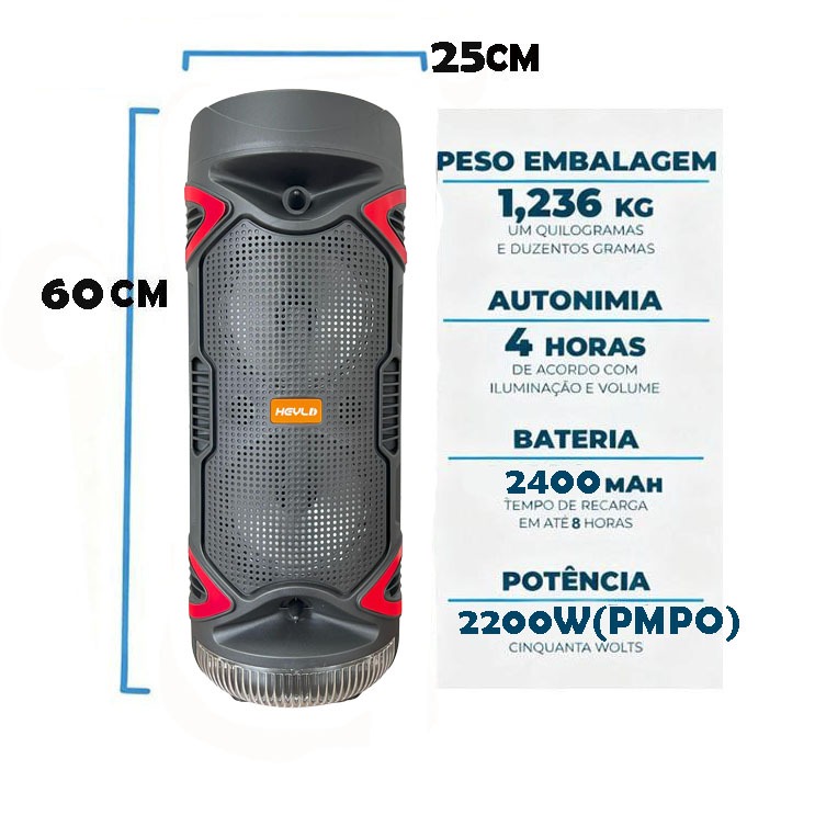 Caixa de Som Portátil HY-1156 Bluetooth – Rádio FM, LED RGB, 2x 8″