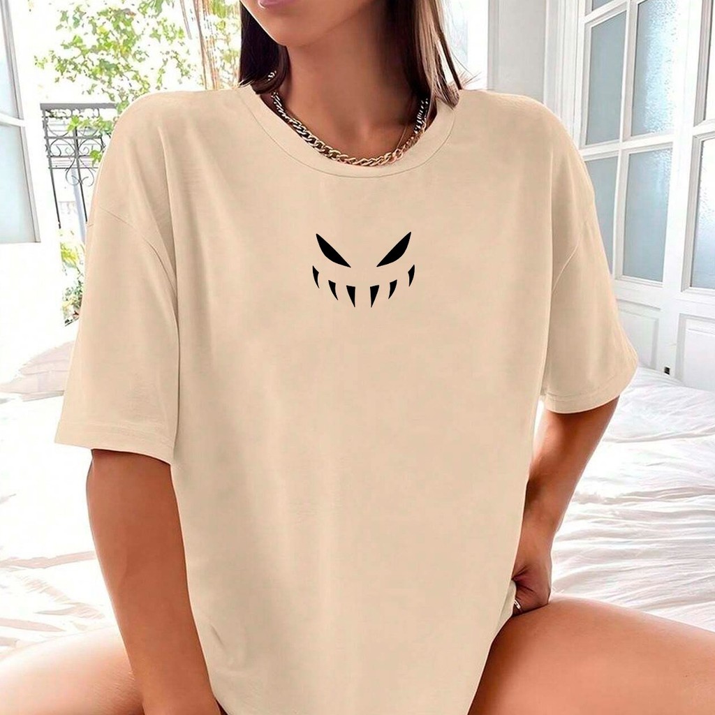 Camiseta Oversized Treino Feminina Academia Estampada Smile Monster Streetwear Estilo de Rua Premium