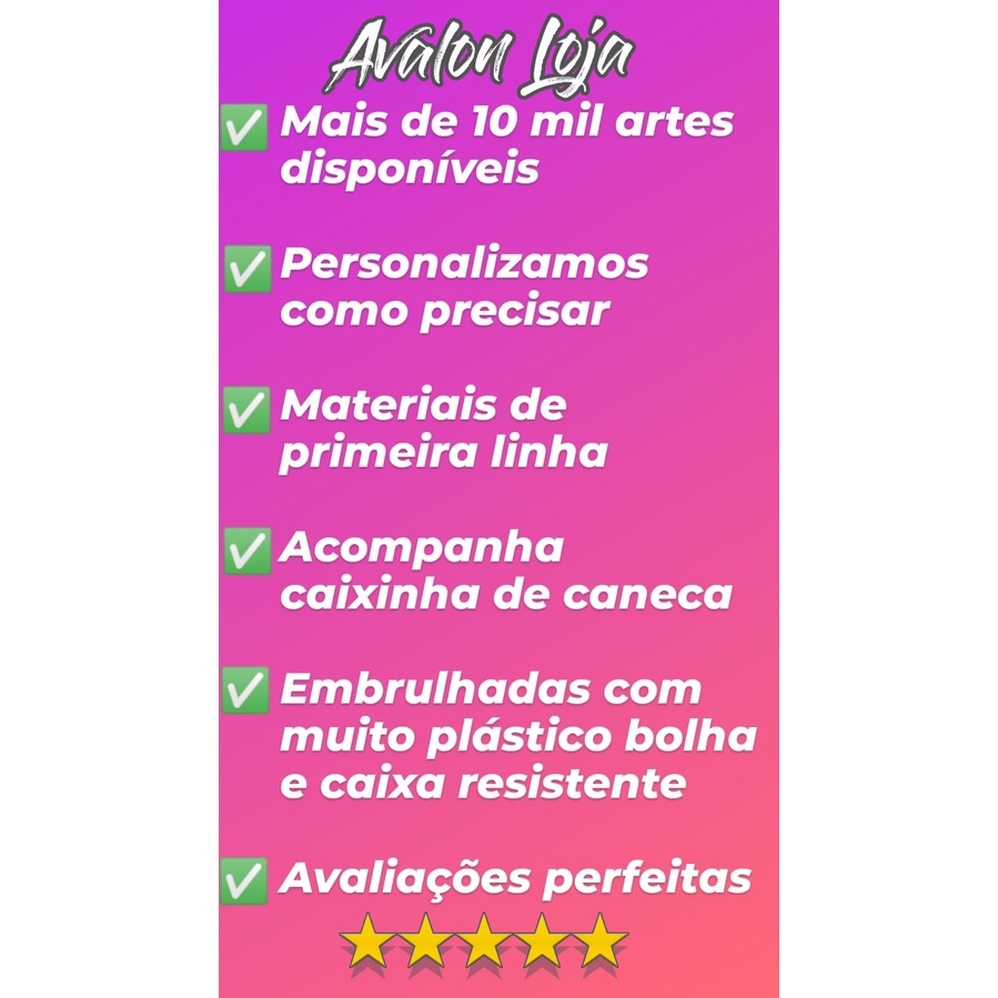 ** Todas nossas canecas podem ser personalizadas da forma que desejar, porém, precisara nos informar por mensagem, imediatamente após a compra. Se quiser incluir nome, ou alterar algum elemento, nos envie por mensagem ou não será possível a personalização. **