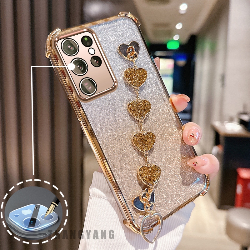 Capa Para Samsung S23 S23 Plus S23 Ultra S23 FE Flash De Telefone Galvanizada anti-Queda Com Pulseira De Coração Fofa TP