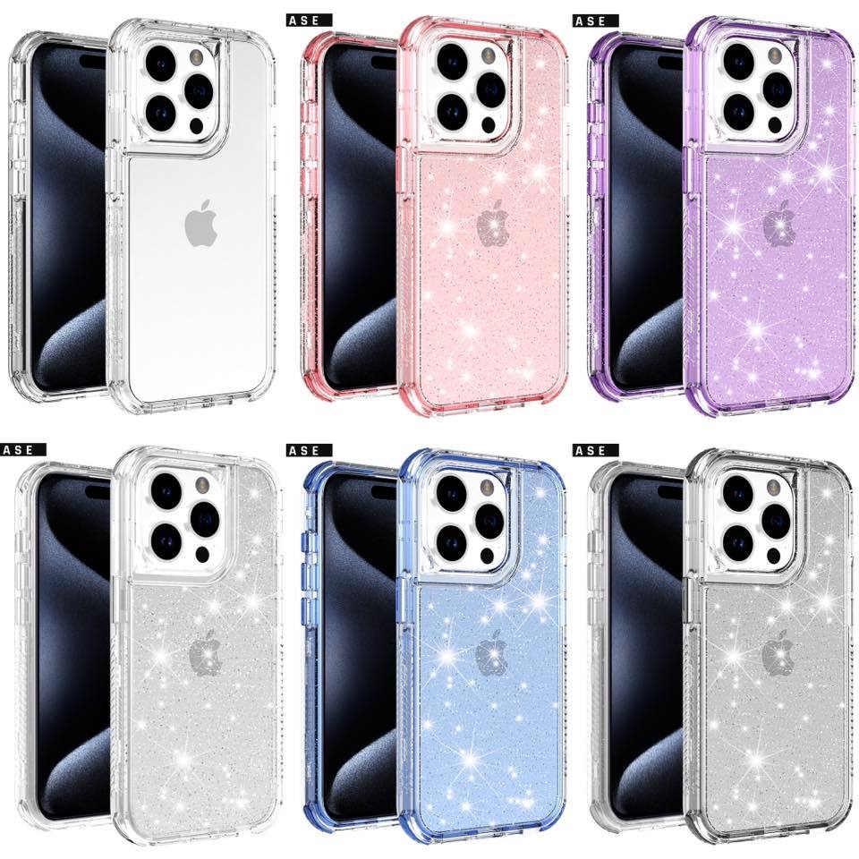 Capa protetora 3 em 1 com glitter para Iphone 12 13 14 15 pro promax……