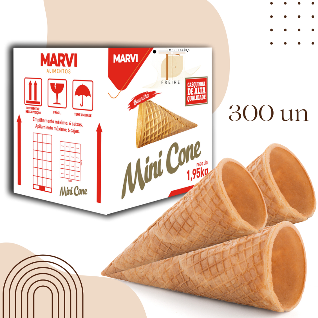 ASQUINHA DE BISCOITO MINI CONE PARA SORVETE MARVI 300 UNIDADES
