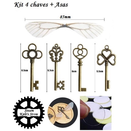 É um lindo kit de chaves aladas para você usar como decoração, seja como colar, decorar ambiente, árvore de natal ou o que mais sua criatividade permitir. Temos a opção com 4 modelos, e a com 3 modelos, a seguir: