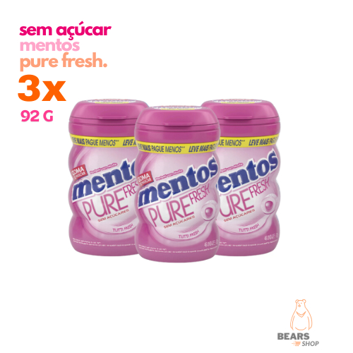 Chiclete Mentos Sem açúcar Kit C/3 Garrafas Pure Fresh Big Tutti-Frutti Zero Açúcar – 92g