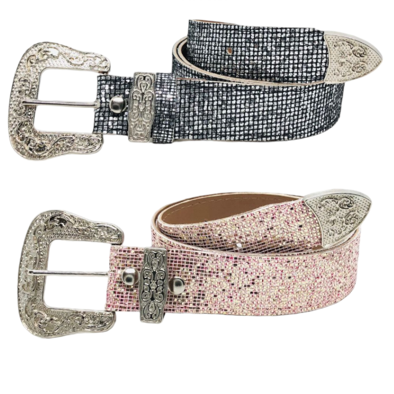 Cinto Feminino Com Brilho, Glitter Fino Básico Fivela Country Prata Entrega Rapida – Bibi