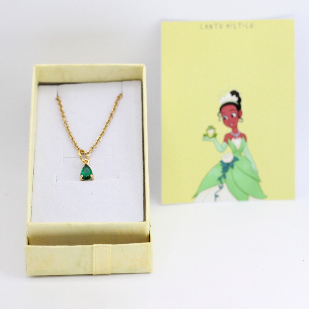 Colar A Princesa e o Sapo + Caixinha Presente Namoro Aço Inox Colar Princesas Tiana