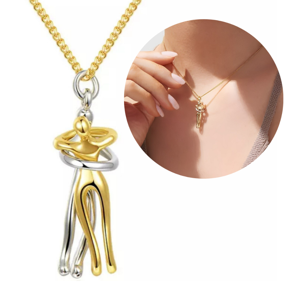 O pingente simboliza o casal unindo-se através de um abraço apaixonado.