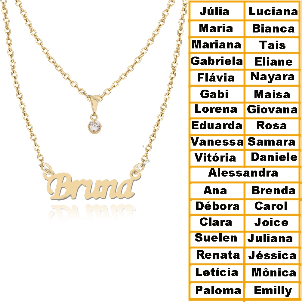Colar Duplo Feminino de nome Bruna Larissa Ana Maria Júlia Eduarda Folheado Dourado Corrente Fino