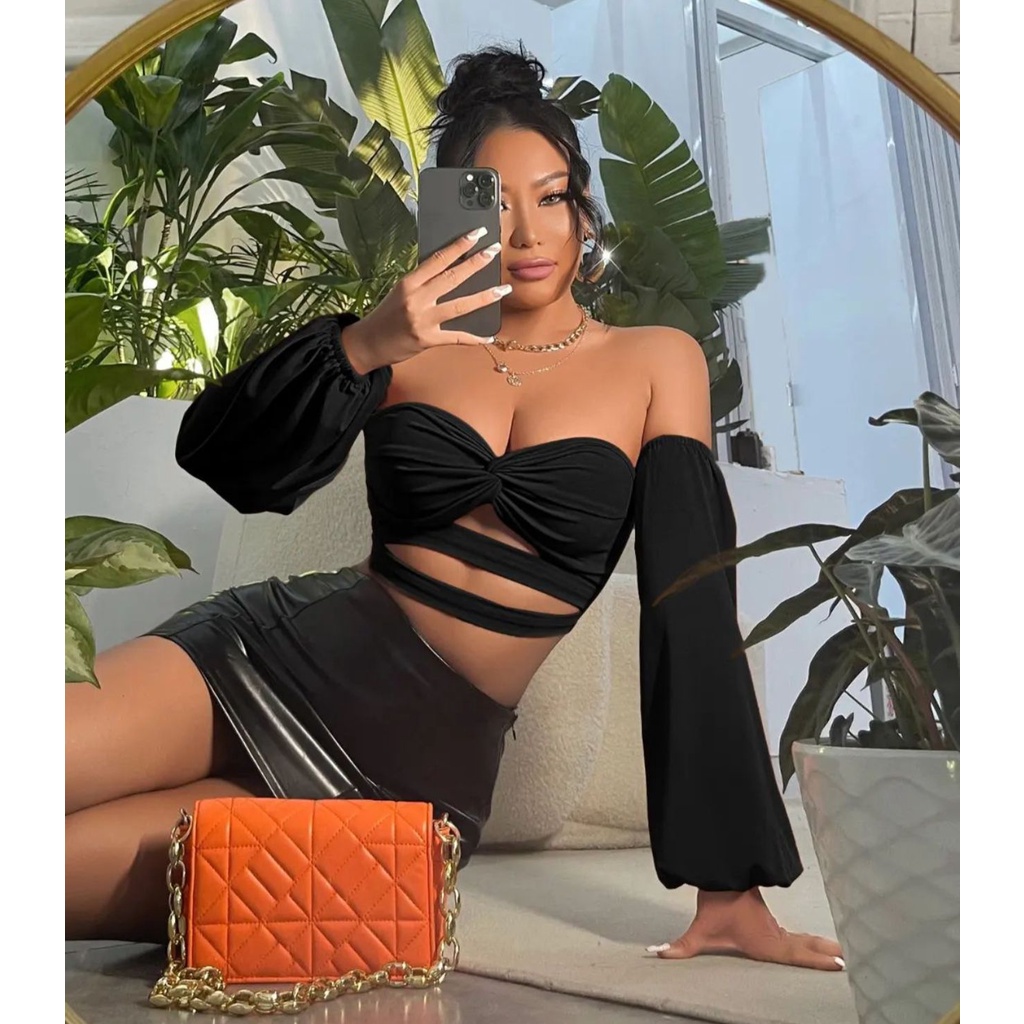 cropped ciganinha manga longa bufante tomara que caia