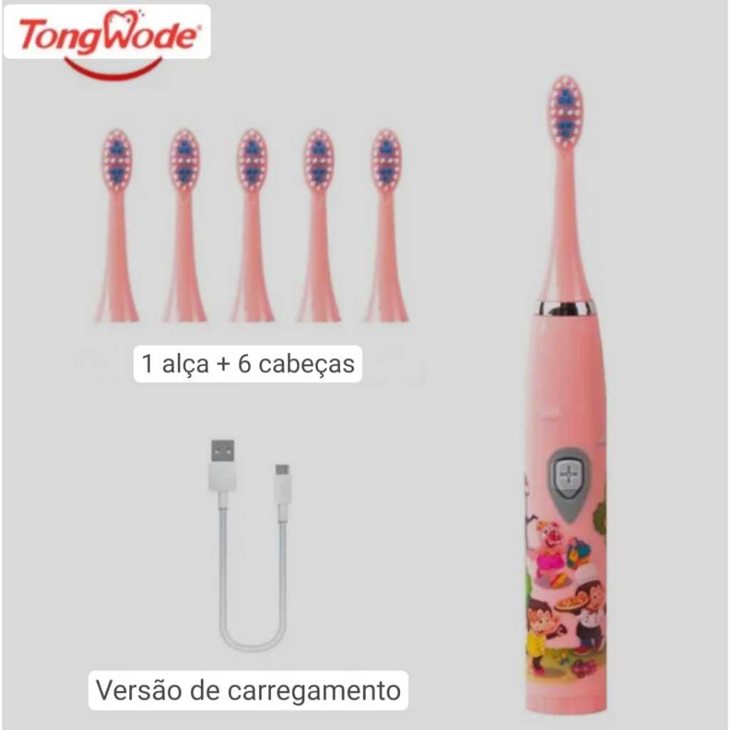 Escova de Dentes Elétrica Sônica Infantil Coloridos, USB Recarregável, Macio, Cabeça de Substituição, Crianças