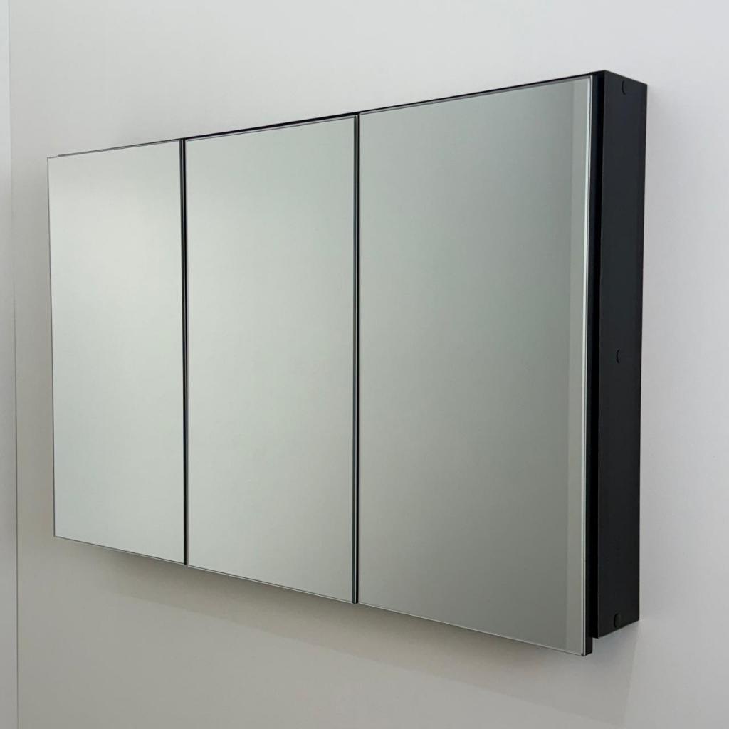 Espelho 80cm Preto para Banheiro Armário 3 Portas com Amortecedor – 100% MDF – MONTADO