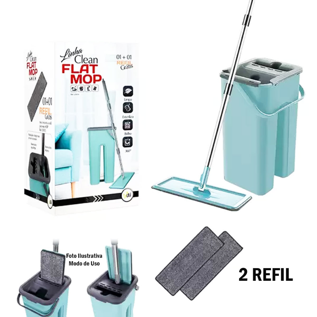 Flat Mop Com 2 Refis De Limpeza Com Balde 5 Litros Esfregão E Rodo Mágico 360° Lava Seca Tira Pó
