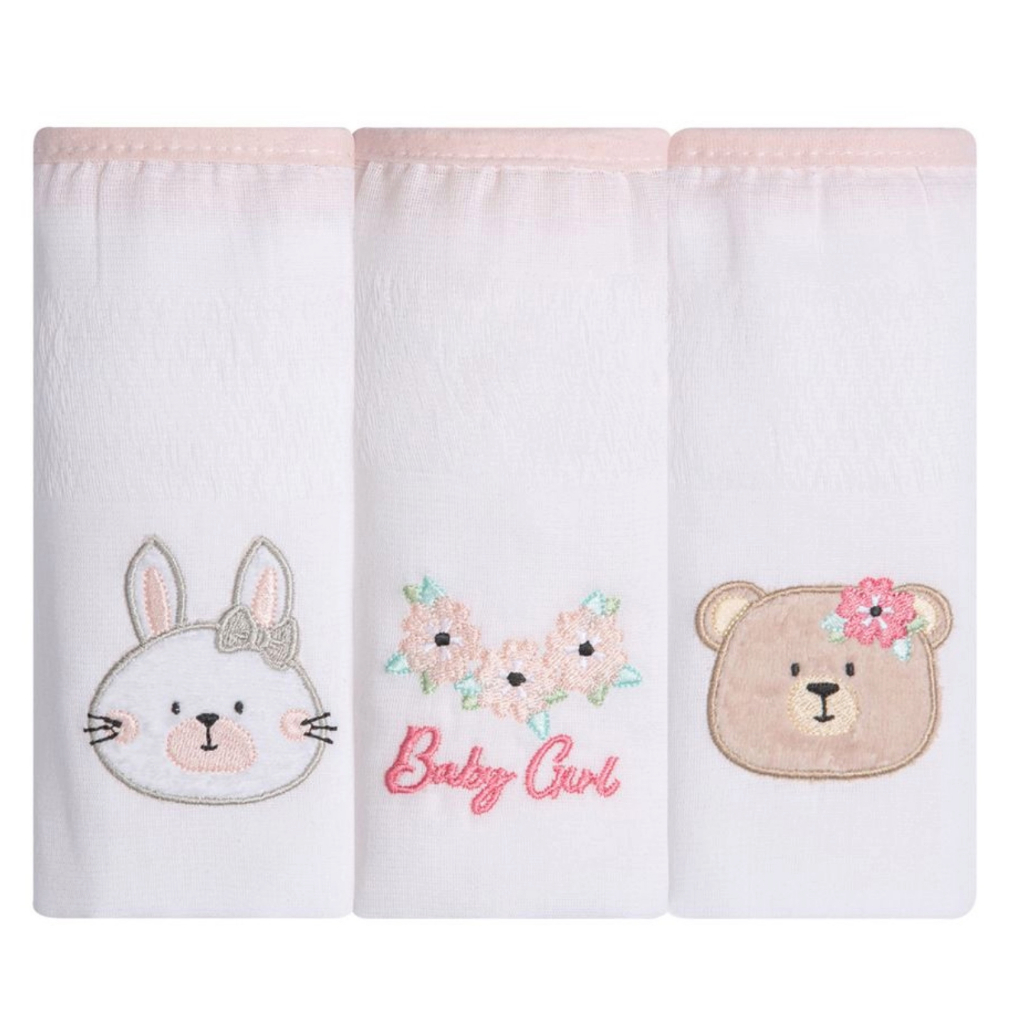 Fralda de pano bordada Gifts Papi Friends Kit com 3 unidades 70x70cm