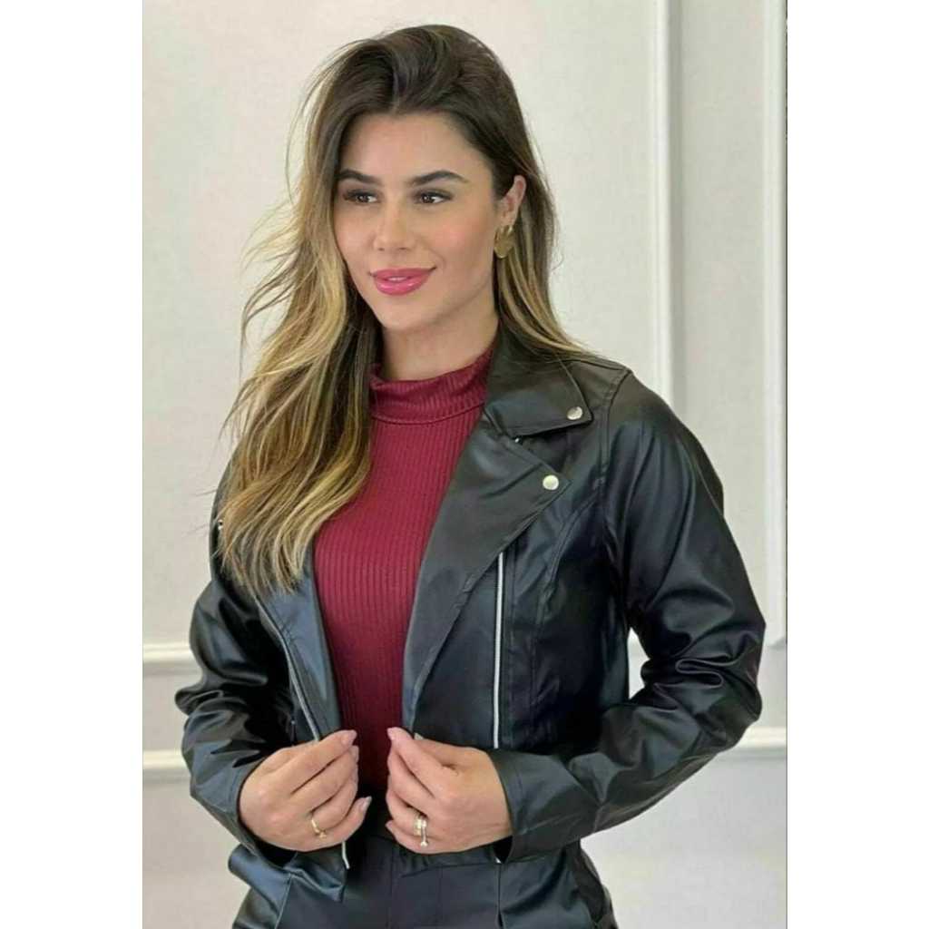 Jaqueta super estilosa, com tecido couro fake. Com zíper frontal.
