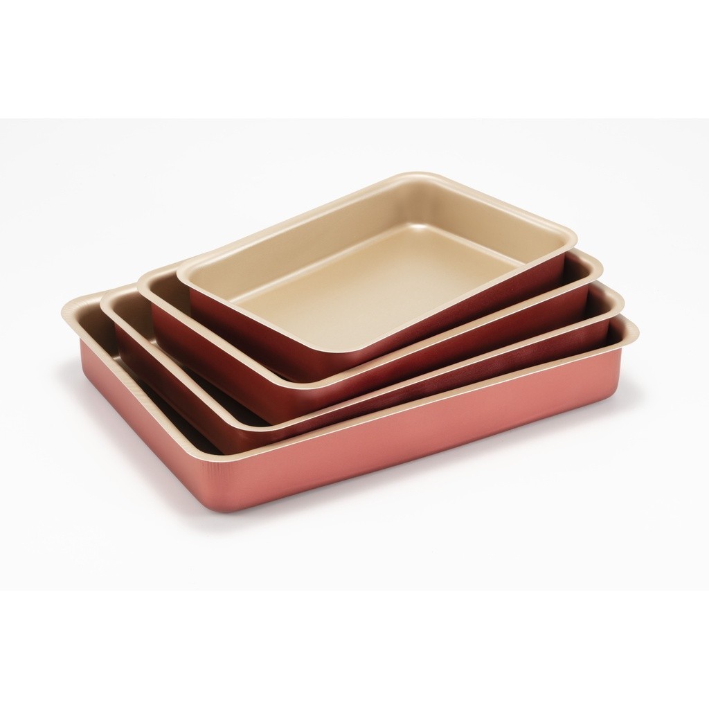 Jogo Conjunto de Assadeiras Tabuleiro Retangulares Altas 04 Peças – Aluminio Antiaderente Cereja – Receitas Não Grudam