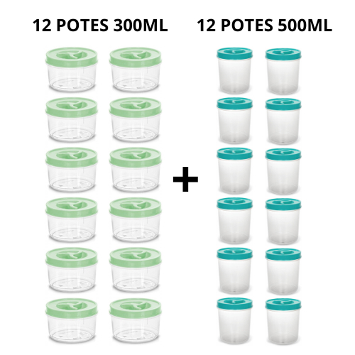 KIT 12 POTES DE 300ML E 12 POTES DE 500ML