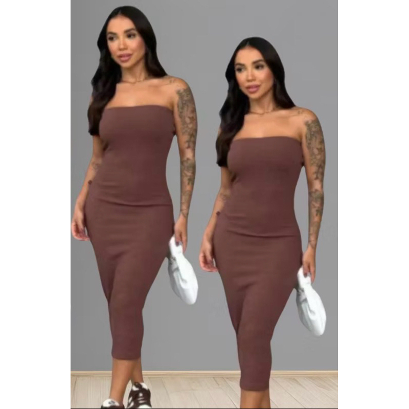 Apresentando uma fusão perfeita de elegância contemporânea e conforto sofisticado, este deslumbrante vestido feminino é uma peça essencial para qualquer ocasião especial. O estilo tomara que caia midi adiciona um toque de glamour atemporal,