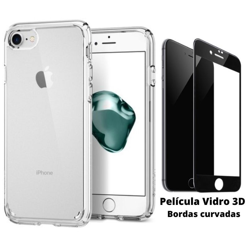 01 Capa Clear Space + 01 Pelicula de Vidro 3D Compativel Com iPhone SE 2020 – 2a Geracao