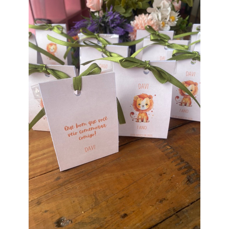kit 50 vela leão Safari com caixa personalizada – Aniversário Chá de bebê Nascimento