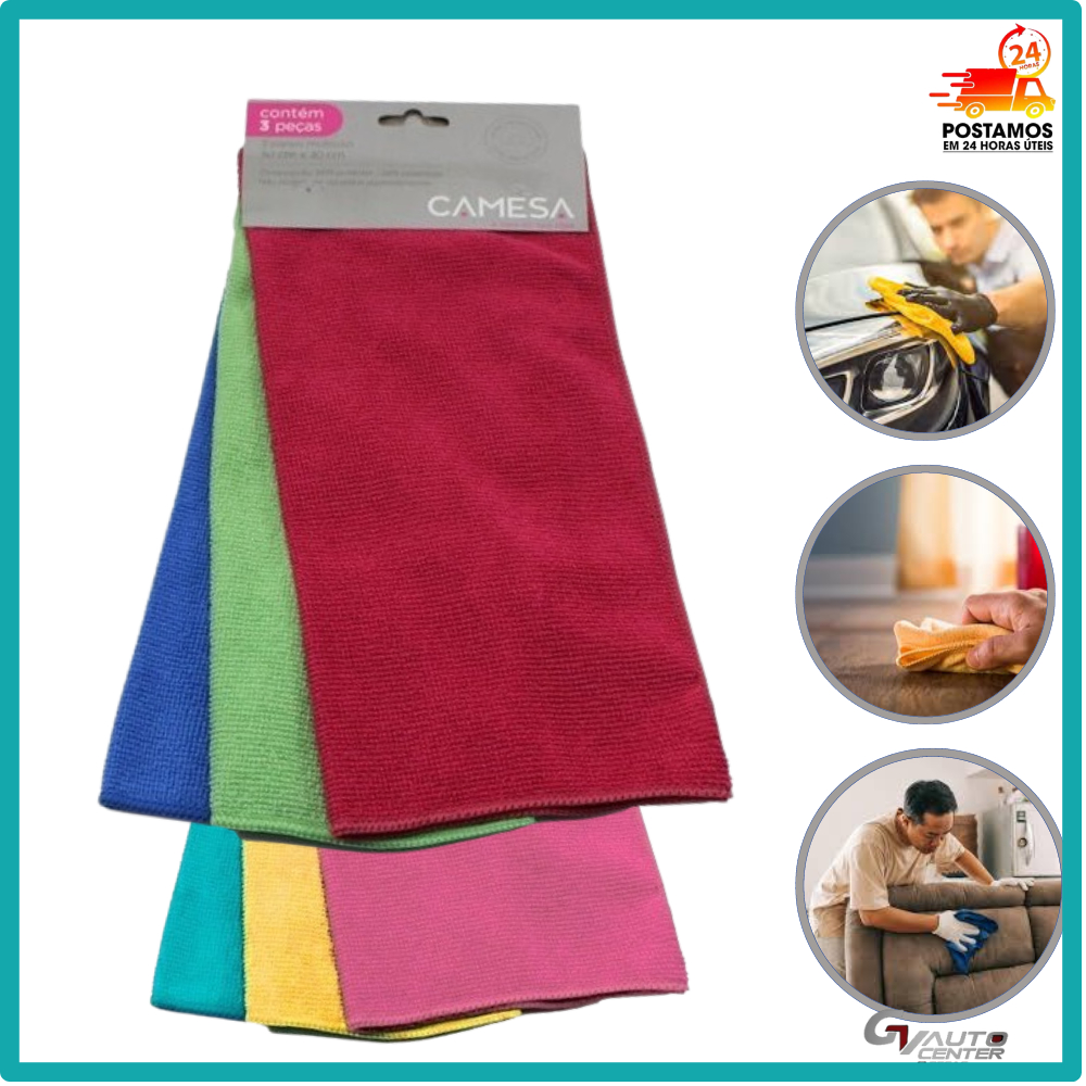 tamanho de 30×30 Ideal para limpeza geral, pano de pia, limpeza de TVs e monitores de LCD, LED ou Plasma, limpeza de automóveis, carros, motos. Super Macio, não risca e não solta fiapos. Limpa sem a utilização de produtos, para todos os tipos de superfícies. Super absorvente, se tem pano de microfibra, tem limpeza!