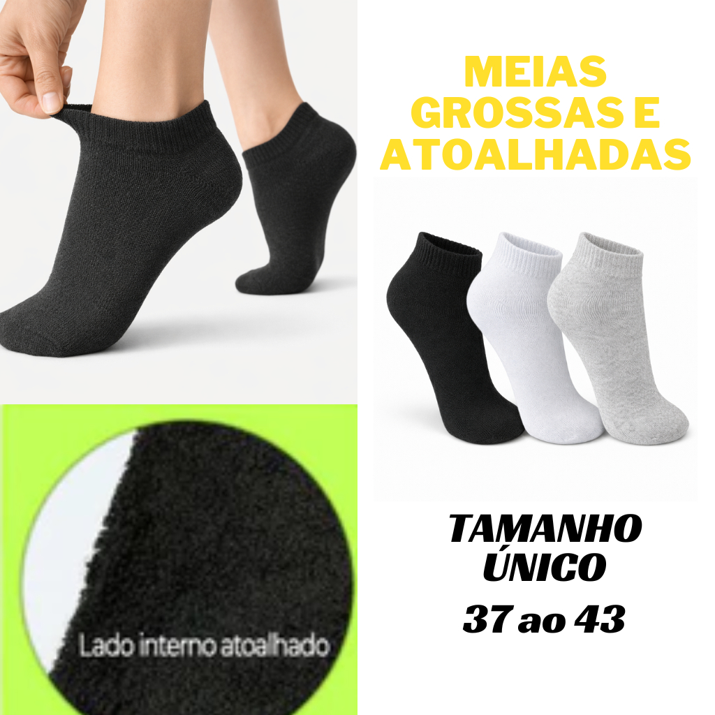 Kit até 12 Meia Soquete Atoalhada Unissex Cano Baixo Grossa Quentinha Adulto TAM 37 ao 43 – Conforto e Proteção nos Dias Frios!
