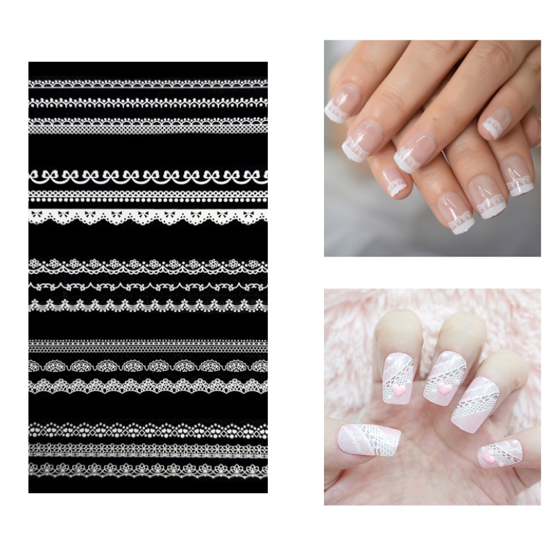 Kit Com 10 Adesivos 3D De Renda Decoração Para Unhas Nail Art