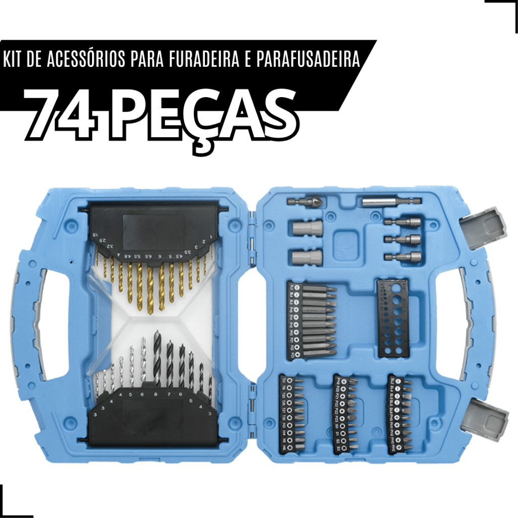 Kit de Acessórios para Furadeira e Parafusadeira com 74 Peças – Completo e Multifunção