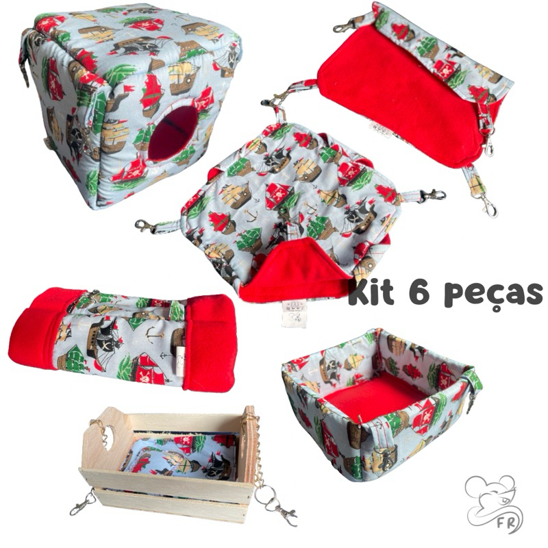 kit para rato twister com 6 peças rede simples, toca cubo, túnel suspenso, rede dupla, cama e balanço