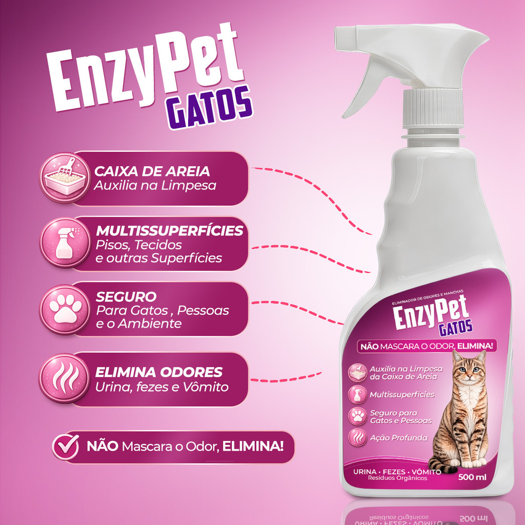– EDUCAÇÃO PET: Remove o rastro olfativo, ajudando o gato a não repetir o erro.