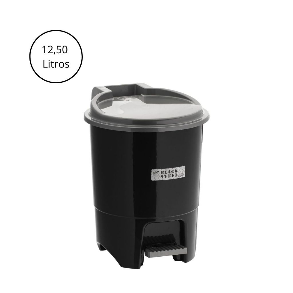Lixeira 12,5 Litros Com Pedal Para Banheiro Cozinha – Preto