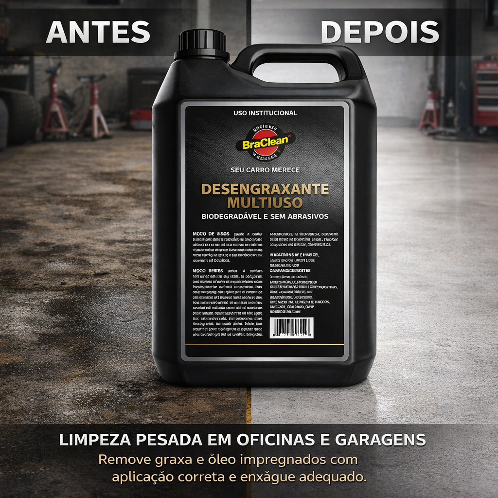 O Desengraxante 5 Litros BraClean foi desenvolvido para quem precisa encarar sujeira pesada no dia a dia, com praticidade e excelente rendimento. Ideal para oficinas, lava-rápidos, frotas e empresas de limpeza, ele auxilia na remoção de óleo, graxa, fuligem e resíduos difíceis em superfícies resistentes, ajudando a devolver o aspecto limpo e organizado de veículos, máquinas e ambientes de trabalho.