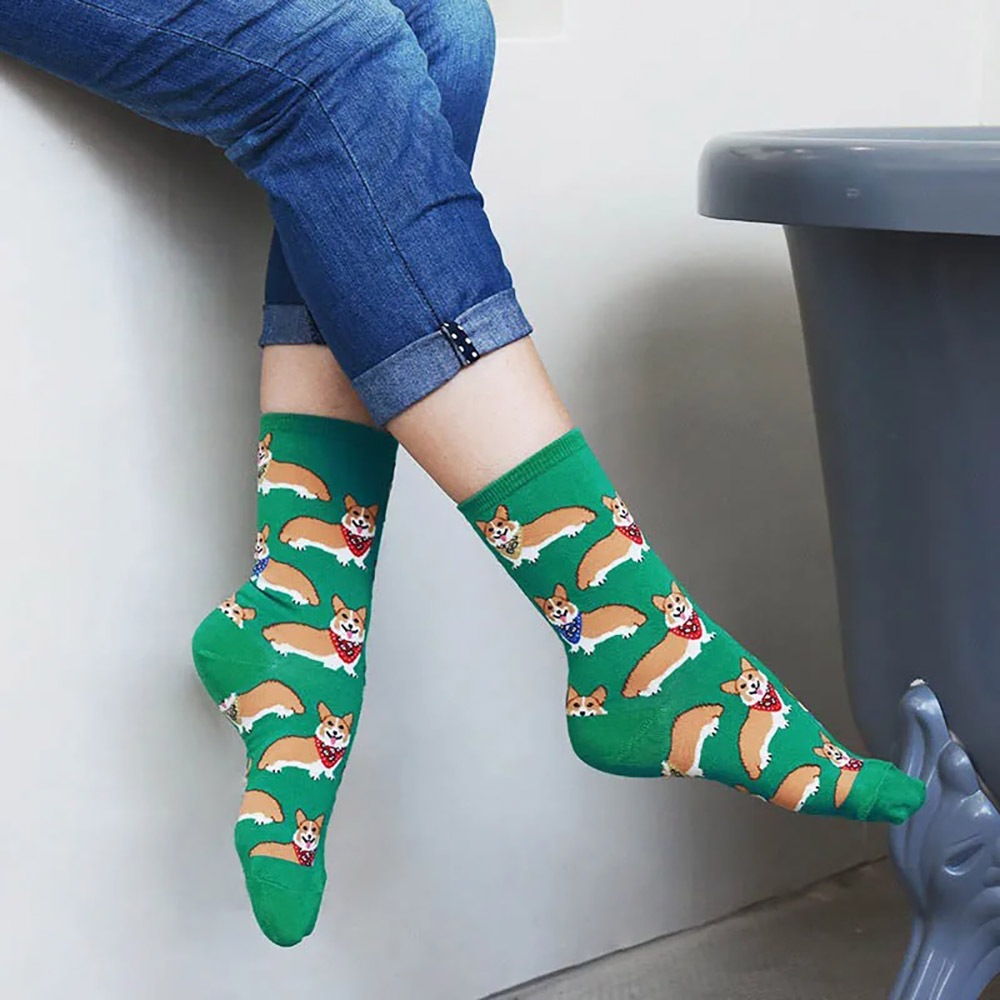 Moda E Divertida Mulheres Meias Tubo Médio Confortáveis De Corgi Pit Bull Impressas