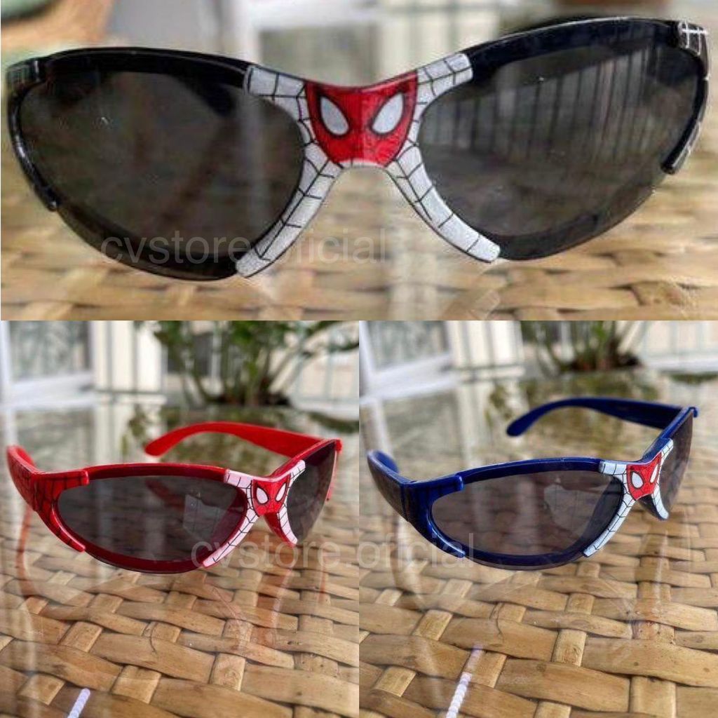Óculos de Sol Infantil Homem Aranha Preto Vermelho Azul Personagem Kids Menino Super Herói Spider Man Proteção Uv-400 Os Vingadores