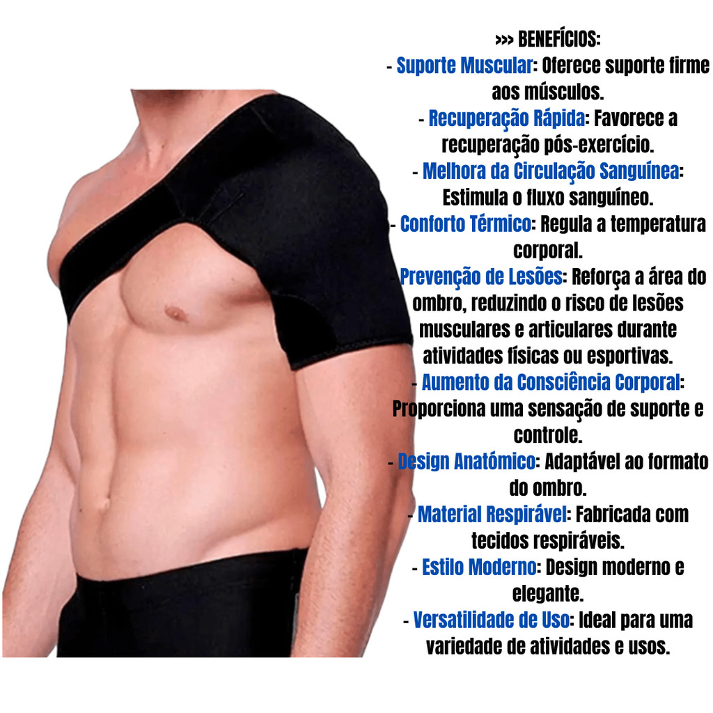 Dores Constantes nos Ombros: Ideal para pessoas que sofrem de dores recorrentes nos ombros, especialmente aquelas causadas por condições como luxação, bursite, artrite ou reumatismo localizado.Prática Esportiva: Perfeito para atividades físicas, como esportes radicais, artes marciais, futebol e outros esportes que exigem movimentos intensos dos ombros.Benefícios da Ombreira MBFit: