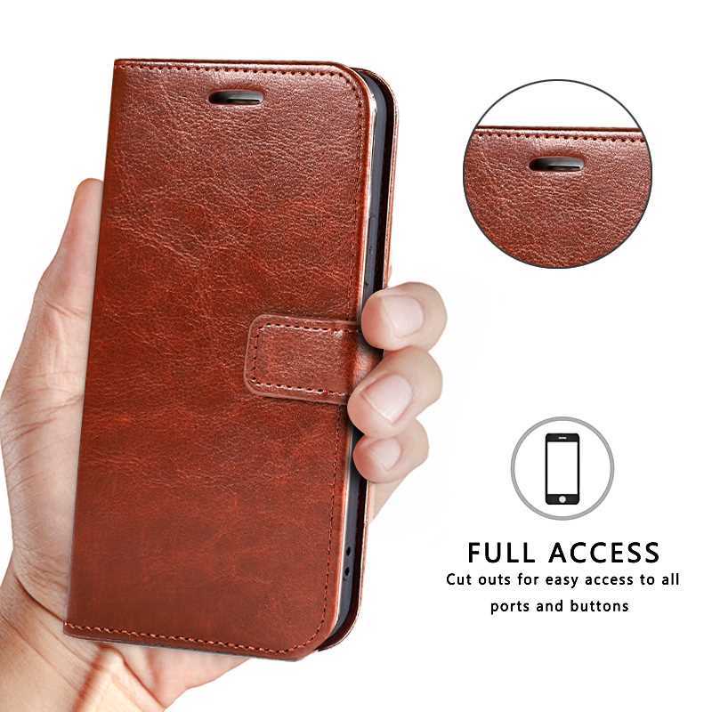 Conveniente: Esta capa dobrável pode ser usada como suporte ajustável, dá ao seu celular um ângulo de visão confortável enquanto não adiciona espessura à sua capa flip. Os recortes precisos para câmera, alto-falantes, o fone de ouvido e outras portas funcionais fornecem fácil acesso a todas as funções. Mude o volume, atenda uma chamada, carregue sua bateria tire uma foto e ouça música sem nunca precisar remover a capa de couro.