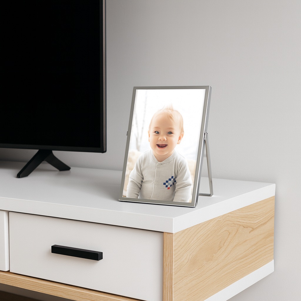 Porta Retrato Mesa 10×15 Metal e Vidro Prateado