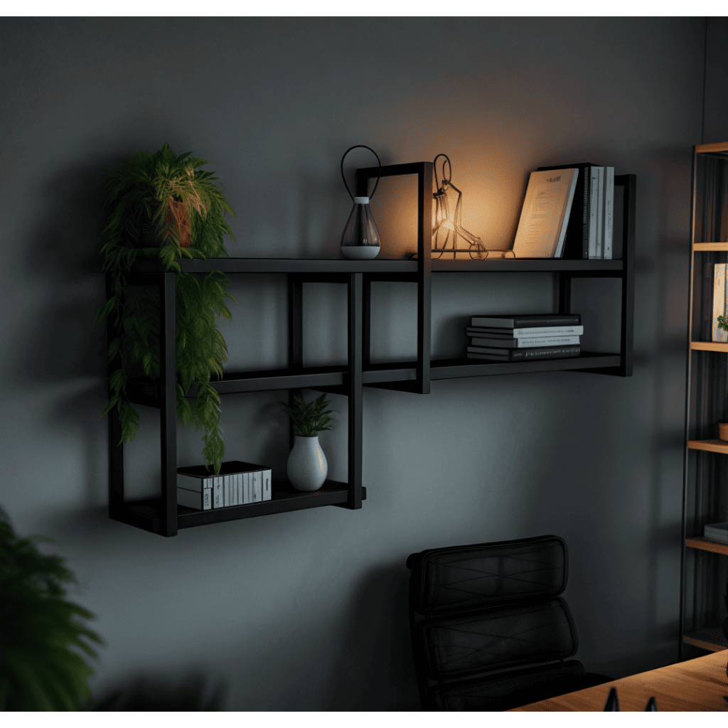 Prateleira Industrial Estante de Parede 120cm +50cm Nicho Mdf