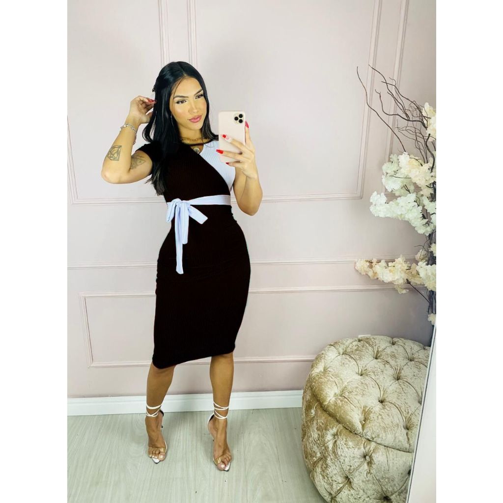 REF 09 – Vestido combinação feminino evangelico adulto modinha canelado midi feminio