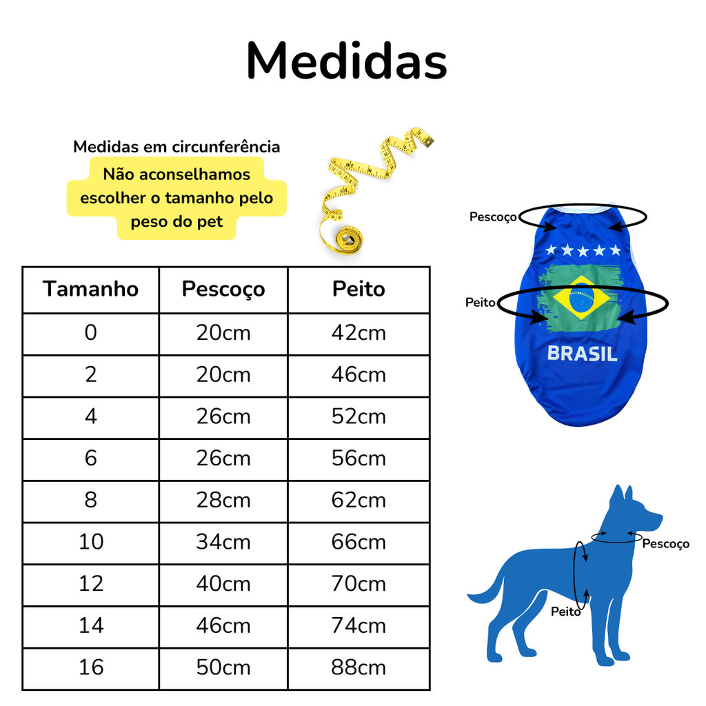 Roupa Camiseta Regata Brasil para Pet Cachorro Gato Futebol Time Copa Azul Amarela Confortável